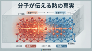 このように、伝導熱は物質を構成する微粒子間の直接的な相互作用によって熱エネルギーが伝達される現象であり、物質そのものの移動を伴わない点が特徴です。