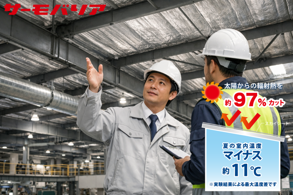 ただし、どのような建物でも同じ結果になるわけではなく、屋根の構造や施工方法、工場内の熱源によって体感は変わります。サーモバリアは仕組みを理解したうえで適切に活用することで、効果をより引き出しやすくなります。