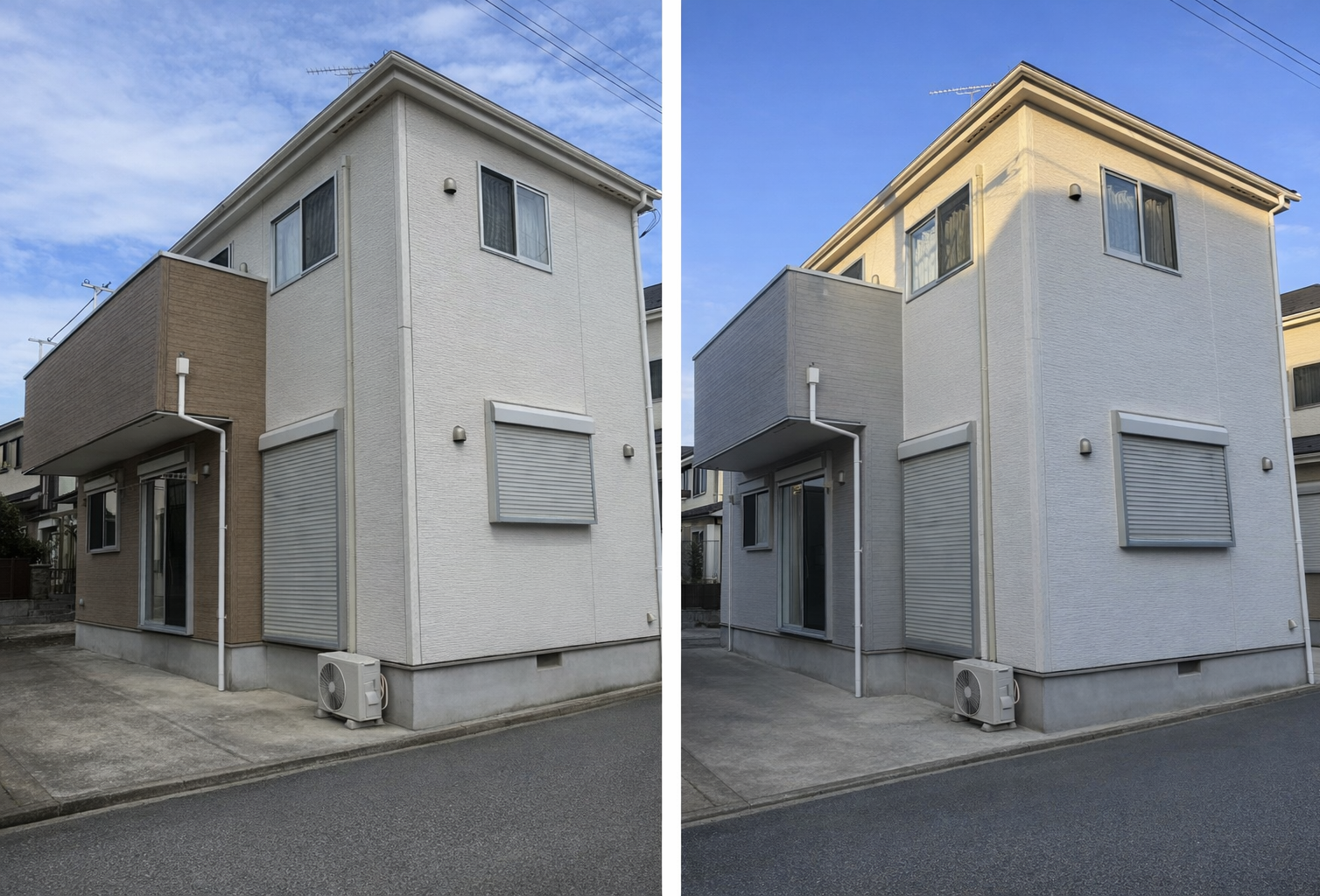 築10年が経過し、外観は一見まだきれいな状態でしたが、 北面の外壁や屋根には一部カビや苔の発生が見受けられました。 今後いずれメンテナンスが必要になることを考えると、 劣化が進む前の段階で施工を行うことで、 同じ工事内容でも建物をより長持ちさせることができると判断しました。